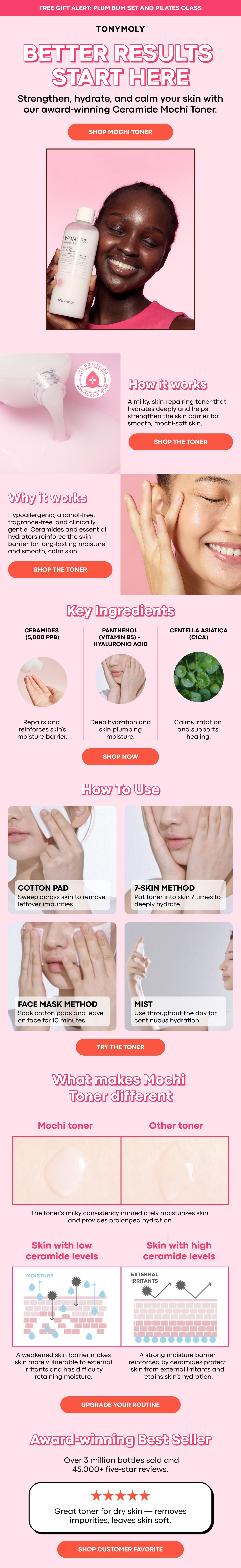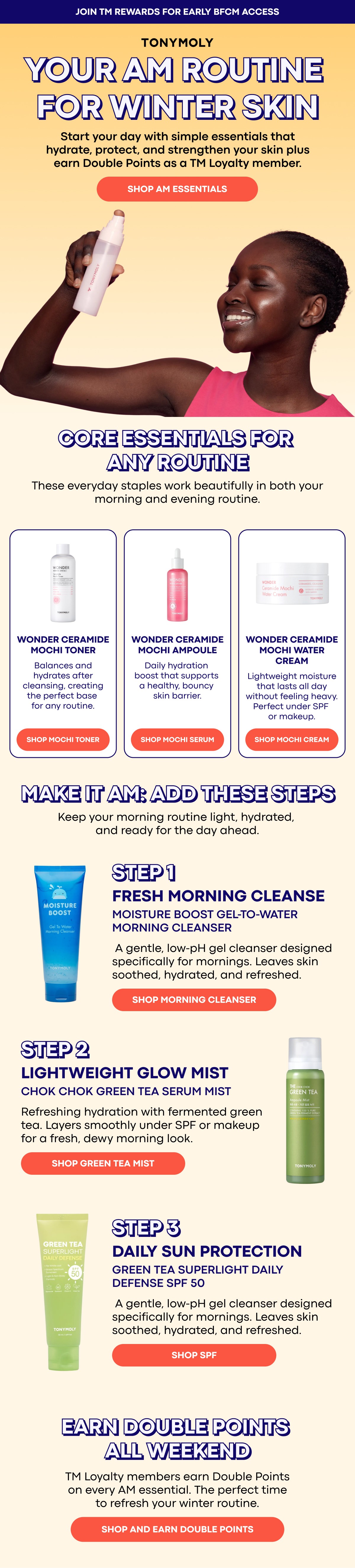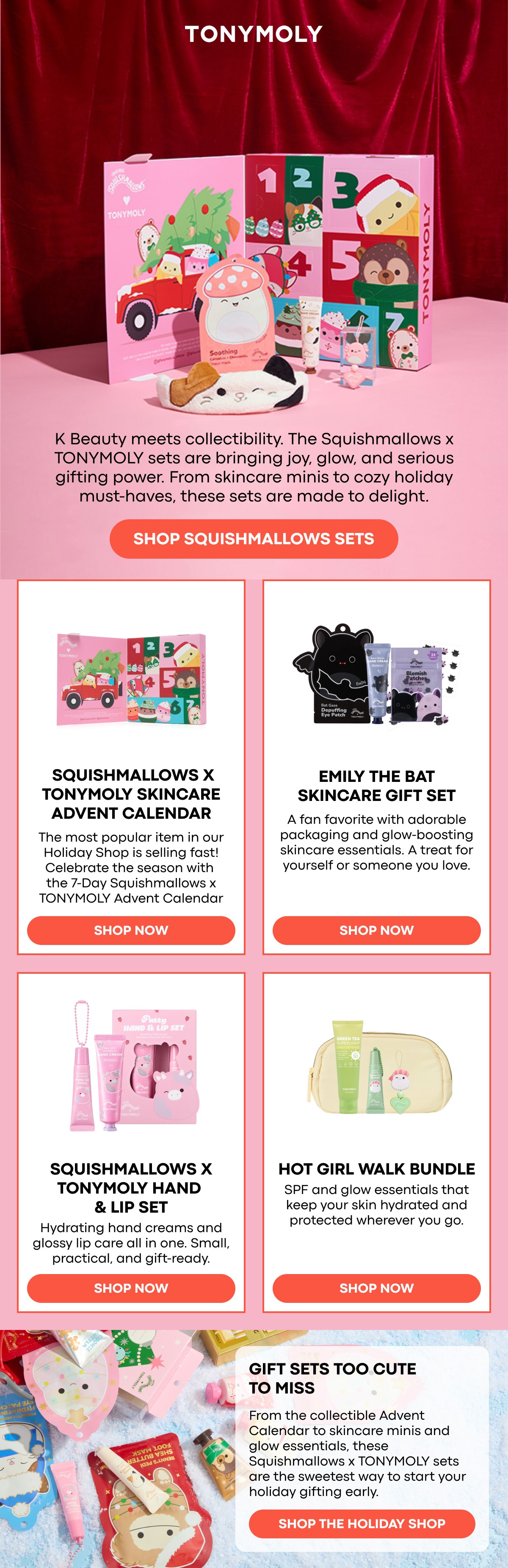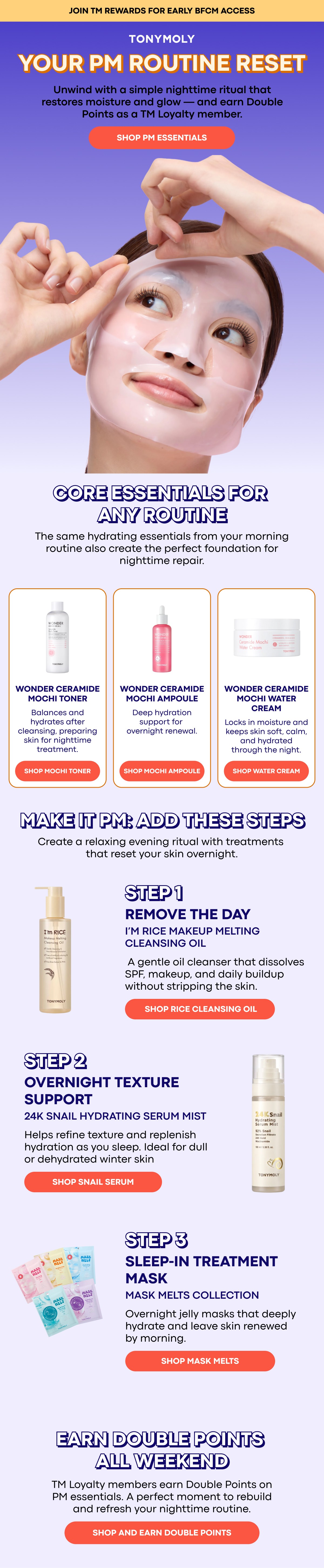 Designed and optimized lifecycle email campaigns for TONYMOLY. Helped translate the brand’s playful, product-driven identity into high-performing, conversion-focused newsletters. Created scalable design systems that balanced editorial storytelling with clear commercial intent across launches and seasonal promotions!